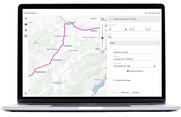 SBB as an example uses the new linear referencing function to map the contact persons for construction work near railways.
